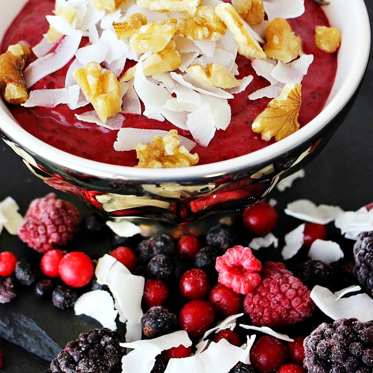 Exquisite flaxseed bowl rich in nutrients, flaxseed combined with bananas and berries.
